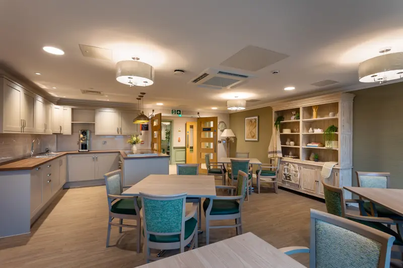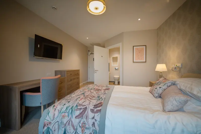Castlewood offers 68 spacious, en-suite bedrooms, arranged over two floors. The home is divided into smaller “neighbourhoods” or wings, each containing around 17 bedrooms along with its own lounge and dining area.