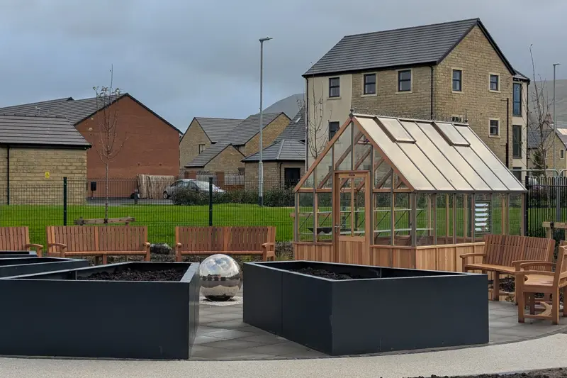 Landscaped gardens, greenhouses, raised planting beds and accessible outdoor paths
