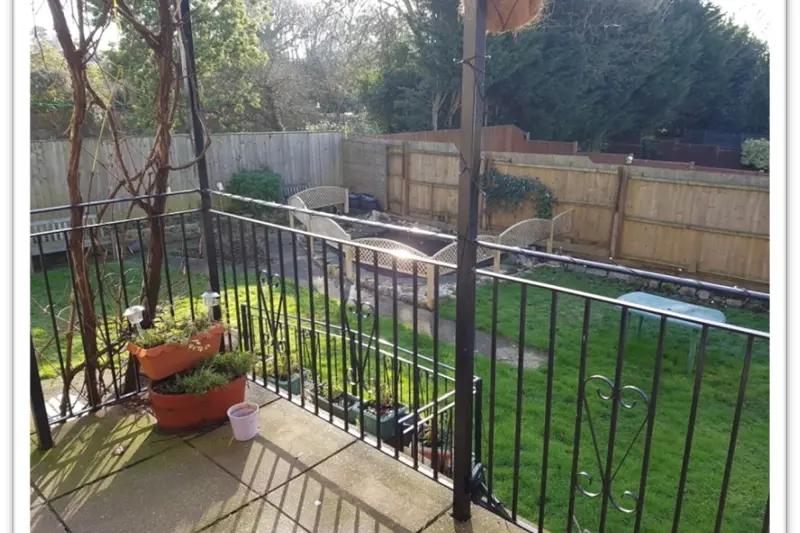 To the rear of the property, a small veranda overlooks the garden and provides a pleasant seating area where residents can relax outdoors, enjoy activities, or spend time with friends and family.