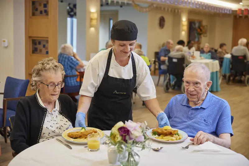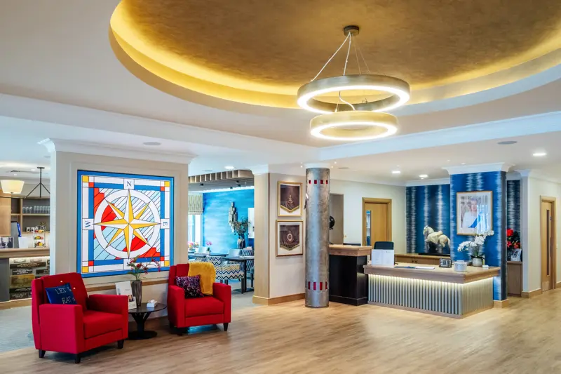 Specialist nursing and dementia care are offered in a relaxed, homely environment. Residents can enjoy the many activities in the spacious lounges, share the day with friends in the cafe-bar, or enjoy quiet time in the library or landscaped gardens.