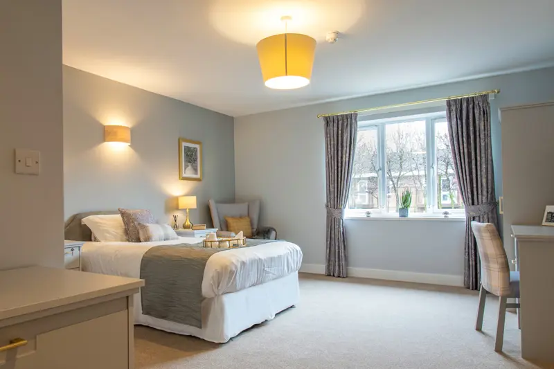 We are a single storey building, our rooms are ground floor rooms with wheelchair access. All of our rooms are en-suite and residents can feel even more at home here if they want to use their own furniture. Pets are welcome throughout the home and in rooms. We have free parking available on site.