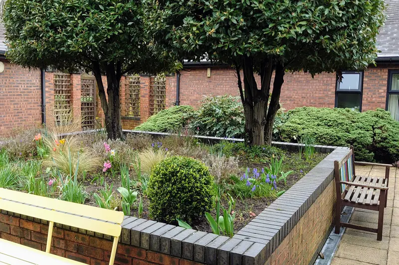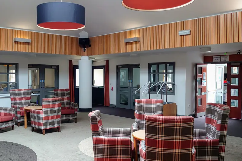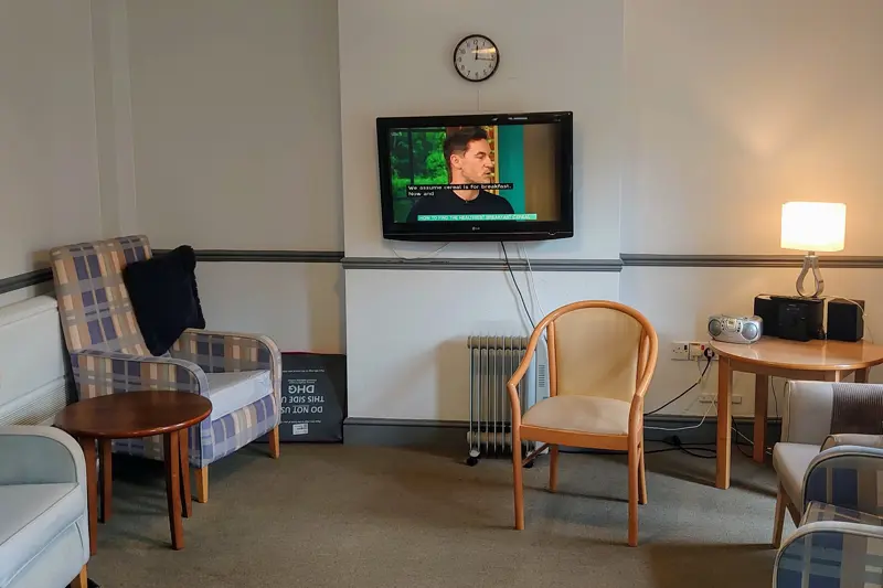 The Hub is a single level (ground floor) property in the Granby / Toxteth area of Liverpool. It has 30 en suite single rooms dedicated to short term reablement care* of its residents, the building has its own small garden areas accessible internally to each of its three units. Each unit has its own dining area and lounge for the ten residents within that unit. There is also a light and airy central atrium where large group activities, physiotherapy assessments, and visitors can sit.