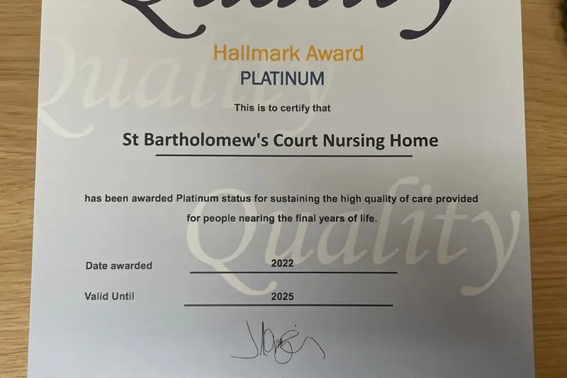 St. Bartholomew’s Court has been a charitable nursing home for the elderly residents of Knowsley for 30 years. We have an excellent footprint in demonstrating high standards of care. We currently hold platinum status for the Gold Standards Framework for End of Life Care.