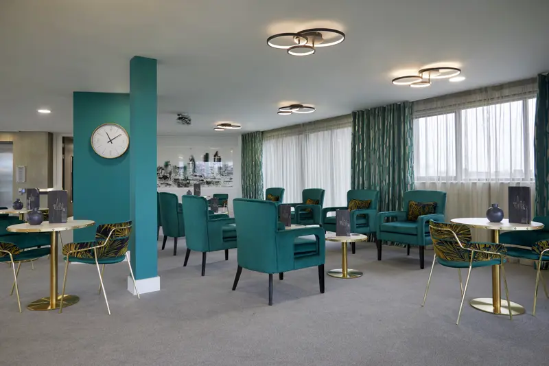 The facilities make life comfortable and enjoyable, allowing people to live safely and as they choose; the home features tastefully decorated lounge and dining areas, a pub, a wellness suite, and a stunning roof terrace boasting a bistro café and spectacular views of the London skyline.