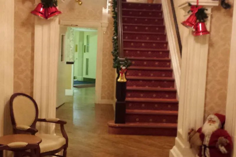 Later additions in 1900 gave the large lounge with the famous wooden ceilings, which we are told used to be the Snooker room. The snooker room is one of four lounge dinning rooms on the General Nursing and Residential unit. The other three are equally impressive with their plaster cornice ceilings.
