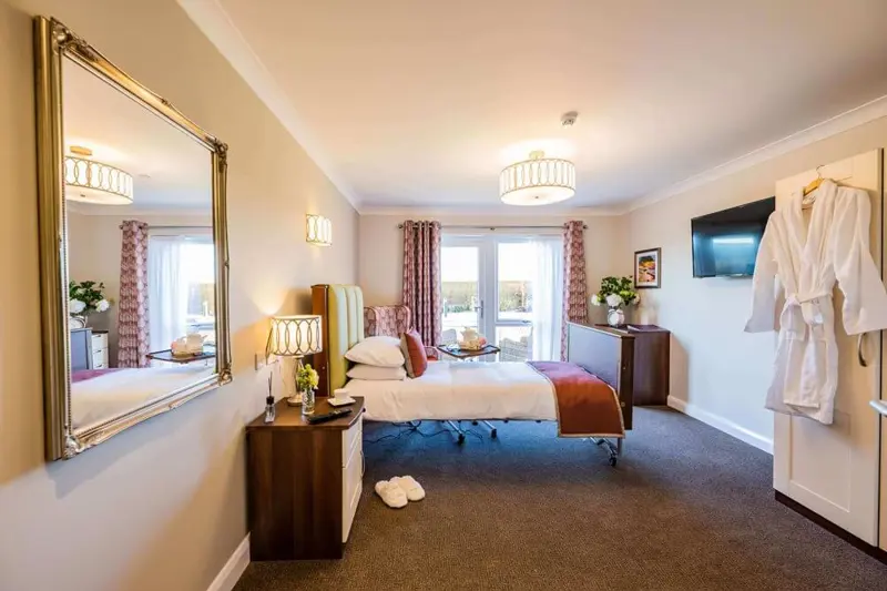 The home is divided into suites – collections of bedrooms with a dining room and lounge. Creating smaller communities makes it easier for residents to get to know each other and keeps hustle and bustle to a minimum. The home also has a café, cinema room and a hair and beauty salon, as well as extensive gardens and outdoor spaces.