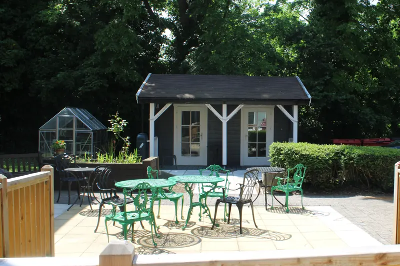 The home has a conservatory in reception which opens up into the garden which features a summerhouse, astro-turf games area and flower beds which are maintained by staff and residents. The garden attracts local wildlife such as squirrels and muntjac deer.