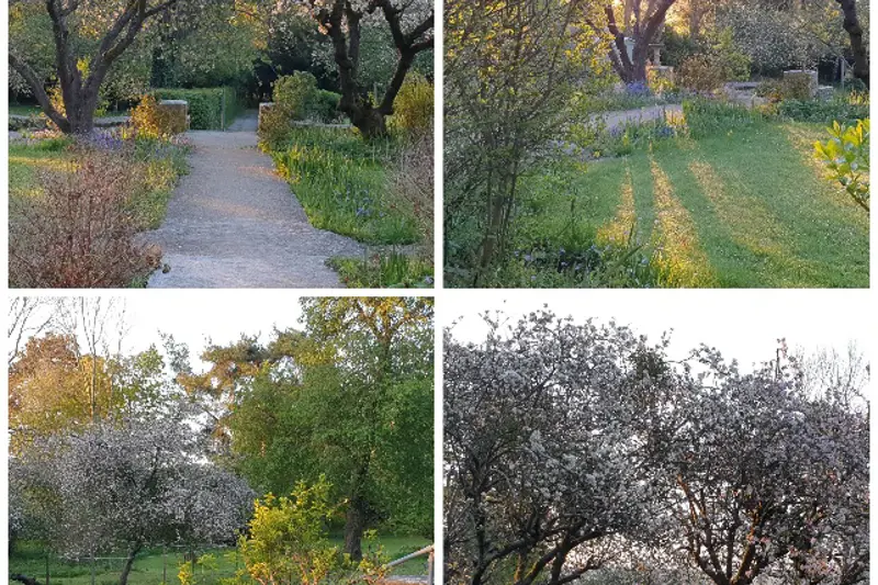 We have lovely extensive gardens, with benches, a fish pond, and a footpath that enables a peaceful walk around the lawns and borders. Surrounded by a variety of trees and wild life with good views over Stroud , the gardens are a picturesque, sheltered place to sit on summer days.