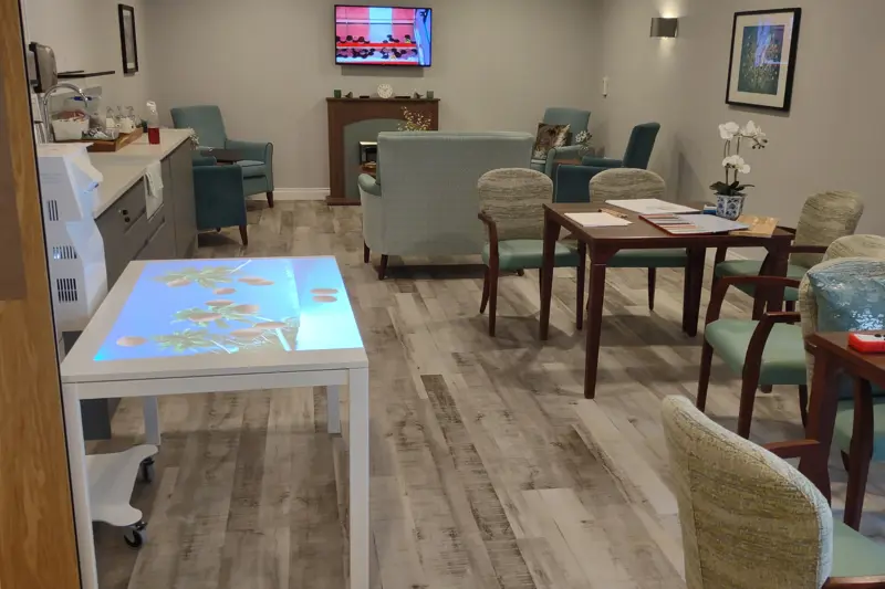 For the resident's comfort all of our bedrooms have wide adjustable beds, with a generous amount of high quality furniture, a reading spotlight above each bed, good spec television and a decent amount of concealed shelving space in each ensuite wet room.