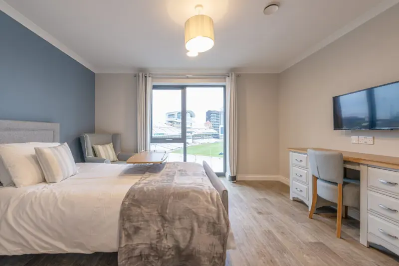 Our amenities include a bistro café, hair and beauty salon, activity room, and cinema, as well as ample lounge areas and elegant dining rooms, and a rooftop terrace boasting stunning views of Nottingham’s landmarks. Adjacent to Trent Bridge Cricket Ground, our luxury care home offers not just a place to live, but a vibrant community where residents can engage in social activities and enjoy scenic beauty.